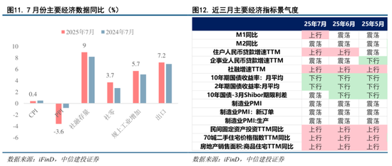 (3)7月宏观景气回升,暂无明显看空压力。8月15日,国家统计局公布7月份经济数据,其中地产数据反弹上行,金融数据持续改善,利差下行暂缓,整体景气有所回升。CPI环比由降转涨,上涨0.4%,扩内需政策效应持续显现,但PPI当月环比下降0.2%,部分指标表现仍存差异。总体而言短期内基本面方面暂无看空压力。