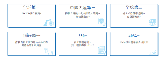 根据弗若斯特沙利文报告,以2024年出货量计,晶存科技在全球嵌入式存储市场所有独立厂商中排名第二,市场份额1.6%;晶存科技在全球LPDDR市场所有独立存储器厂商中排名第一,市场份额2.6%;晶存科技在全球搭载自研嵌入式主控芯片的存储器市场所有独立存储器厂商中排名第二。