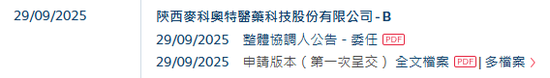 2025年9月29日,来自陕西西安高新技术开发区的陕西麦科奥特医药科技股份有限公司Shaanxi Micot Pharmaceutical Technology Co., Ltd.(简称“麦科奥特”)在港交所递交招股书,拟在香港主板挂牌上市。