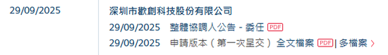 2025年9月29日,来自广东深圳龙华区的深圳市欢创科技股份有限公司SHENZHEN CAMSENSE TECHNOLOGIES CO., LTD.(简称“欢创科技”)在港交所递交招股书,拟在香港主板挂牌上市。