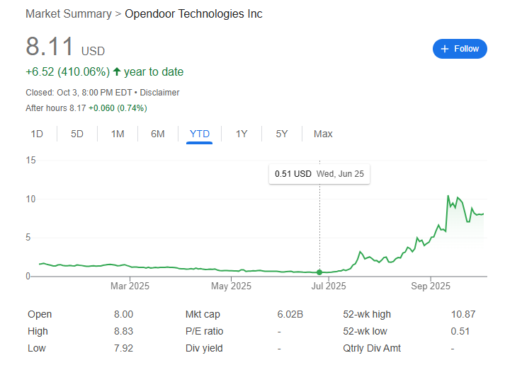 一家成立以来年年亏损的房地产科技公司Opendoor,在2025年上演了资本狂欢。