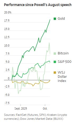 Northwestern Mutual财富管理公司股票首席投资组合经理Matt Stucky表示,“今年货币贬值交易势头强劲,黄金和比特币等资产表现亮眼。实际利率走低,加之美联储在通胀居高不下仍重启降息周期,为资产价格上涨提供了额外催化剂。”