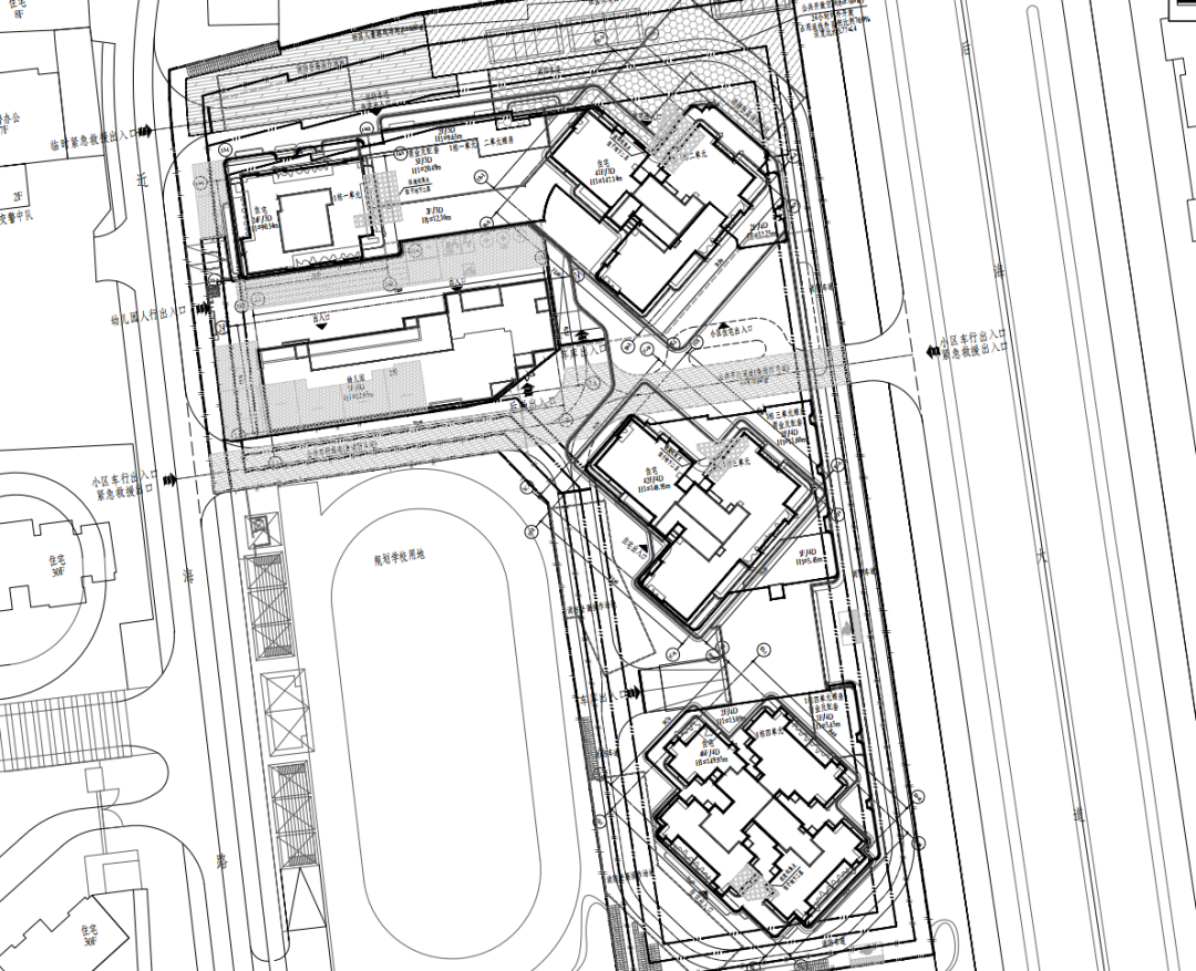 整个总平图来看,这栋回迁房是没有跟另外三栋商品房分隔开的。