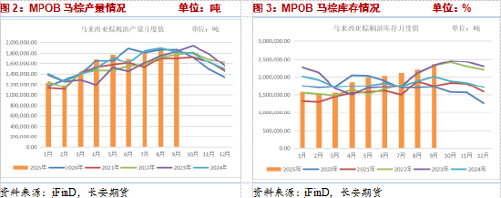 马来西亚方面,马来西亚棕榈油协会(MPOA)称,2025年9月马来西亚棕榈油产量预估为181万吨,环比下降2.35%,其中马来西亚半岛的产量环比下降6.17%。