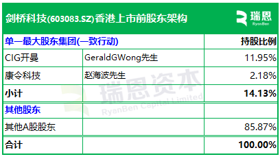 招股书显示,剑桥科技在香港上市前的股东架构中,