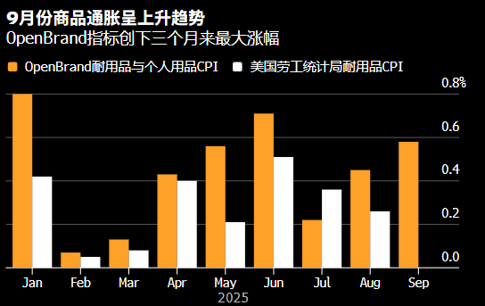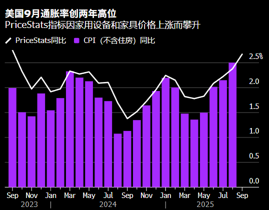 私营部门数据显示,美国9月份通胀率上升,在官方政府指标缺位的情况下,进一步印证了关税推高特定商品价格的趋势。