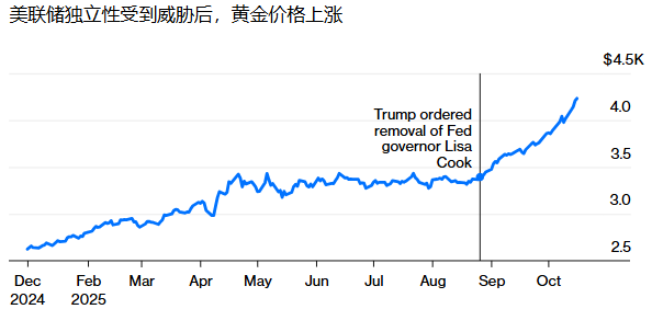 今年,美国的小散户投资者如今已成为市场的主导力量。只要是他们选择投资的资产类别,从历史标准来看,高昂的估值已不再能预示未来的回调。自 8 月 26 日特朗普下令试图解除美联储理事莉萨·库克的职务以来,黄金价格已上涨约 25%。美国最高法院已推迟就总统试图罢免库克一事作出裁决。她目前仍在美联储任职。