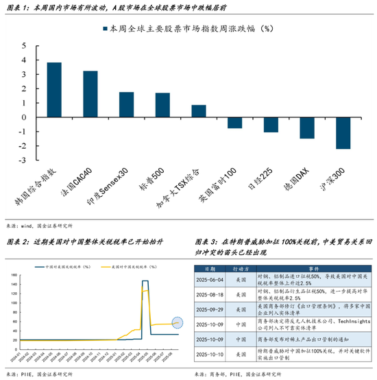 我们在上周的报告《无恐惧,不贪婪》中曾经指出:中国资产过去一段时期的上涨更多来自与海外科技联动的上涨,而这也形成了中国资产短期的脆弱点,A股存在指数层面调整的可能,但幅度可控。本周A股市场确实出现明显波动,沪深300指数下跌2.2%,从全球范围来看本周A股同样回撤较大,不过相比于4月初第一轮特朗普关税冲击时期的调整幅度则小了很多。