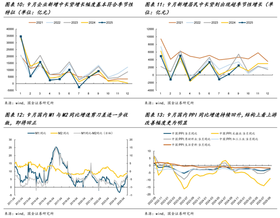 从物价变化的情况来看,9月国内PPI同比增速进一步回升;结构上看,上游采掘业及原材料制造相关行业的同比增速改善情况更为明显。随着企业部门在政策支持下持续推进反内卷,目前落地到价格企稳回升的信号正在被持续观测到,后续值得关注的是相关行业利润持续改善的情况。