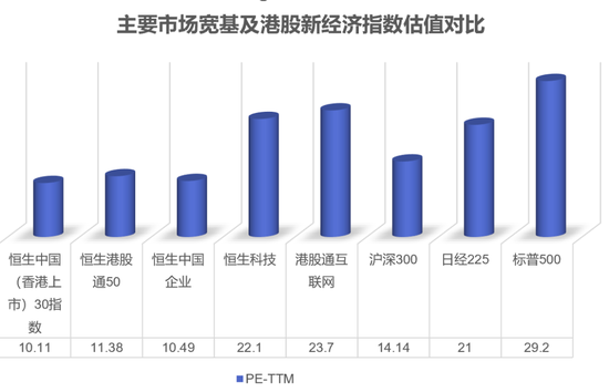截至最新,恒生中国(香港上市)30指数PETTM为10.11倍,PB为1.03倍,显著低于恒生科技、港股通互联网等新经济指数,也低于恒生港股通50等宽基指数。