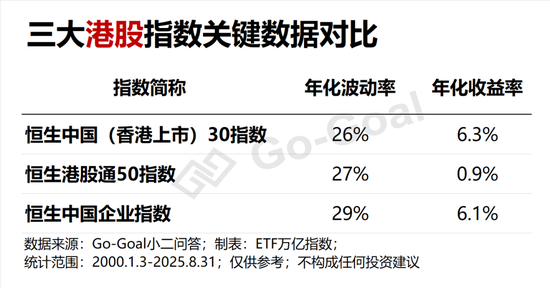 从长期表现看,恒生中国(香港上市)30指数年化收益率达6.3%,优于恒生港股通50、恒生国企等宽基指数,也跑赢恒生科技、消费等新经济指数,甚至在红利类指数中也显示出更强的向上弹性。这说明其在控制波动的同时,具备持续的超额收益能力。