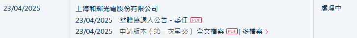 和辉光电,于2025年4月23日在港交所递交招股书,由中金公司独家保荐。
