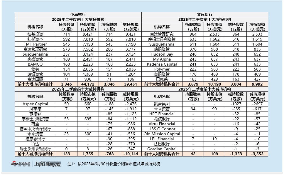 反观文远知行,2025年二季度增持机构合计增持股数对应的规模仅1亿美元(按2025年6月30日收盘价测算),不仅规模远低于小马智行,增持机构的质量也存在明显差距。其前十大增持机构包括Hudson Bay、My Alpha、Kadensa、Polymer等对冲基金,这类基金通常具有持有期限短、交易频率高的特征。更值得注意的是,凯雷集团在2024年四季度同时买入小马智行及文远知行股份后,于2025年二季度选择清仓所有文远知行的股份,仅保留小马智行持仓,这一操作进一步凸显了机构对两家企业长期价值的差异化判断。