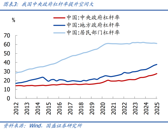 >总量政策方面,中央加杠杆,对冲地方、居民化债压力。截至2025年二季度,我国中央政府杠杆率仅有27.6%,处于较低水平,后续提升空间充裕;“十五五”期间可进一步提升中央政府赤字率水平,适时降准降息,对冲地方化债、居民部门不加杠杆的压力,支撑经济保持中高增速。