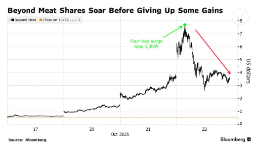 一场为期四天的暴涨,让尚未盈利的素食制造商Beyond Meat(BYND.US)股价飙升逾1000%,但大部分涨幅却在顷刻间蒸发殆尽;黄金价格创纪录飙升后,遭遇数年来最惨烈的两日抛售潮;与此同时,追踪比特币、Solana等波动加密货币的高风险ETF,却吸引了数十亿美元资金涌入。