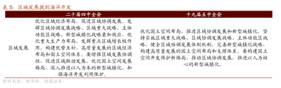 此外,值得注意的是,相较于十九届五中全会,本次公报提到了“海洋开发”。上一次在公报里提到“海洋”还是在聚焦十二五规划的十七届五中全会。