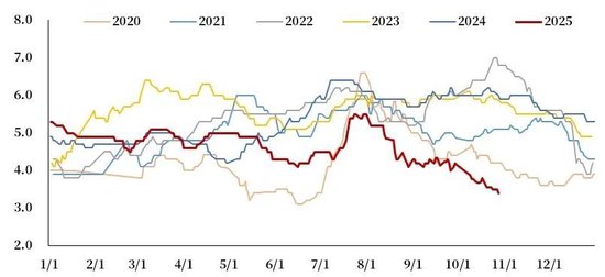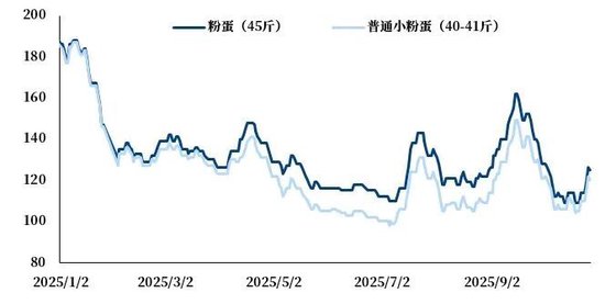 蛋价在国庆节后进入快速下跌通道,一度触及年内低位,馆陶等地报价接近2.4元/斤,养殖端再度转向亏损。但蛋价跌至低位后,提振了下游贸易环节的抄底心态。同时,近期全国气温大面积下降,延长了鸡蛋储存时间,降低了仓储损耗成本。贸易商对元旦、春节等节日涨价仍抱有预期,集中备货行为短期带动了需求的上升,推动现货价格快速修复,馆陶蛋价快速拉升至2.8元/斤附近。但从目前市场的表现来看,本轮上涨是基于需求的前置与库存转移,可能透支未来旺季的真实消费。一旦囤货结束而终端消费未能跟进,市场将重新面临库存消化压力,价格存再次回调风险。因此,对本轮反弹的持续性与高度不宜过度乐观。
