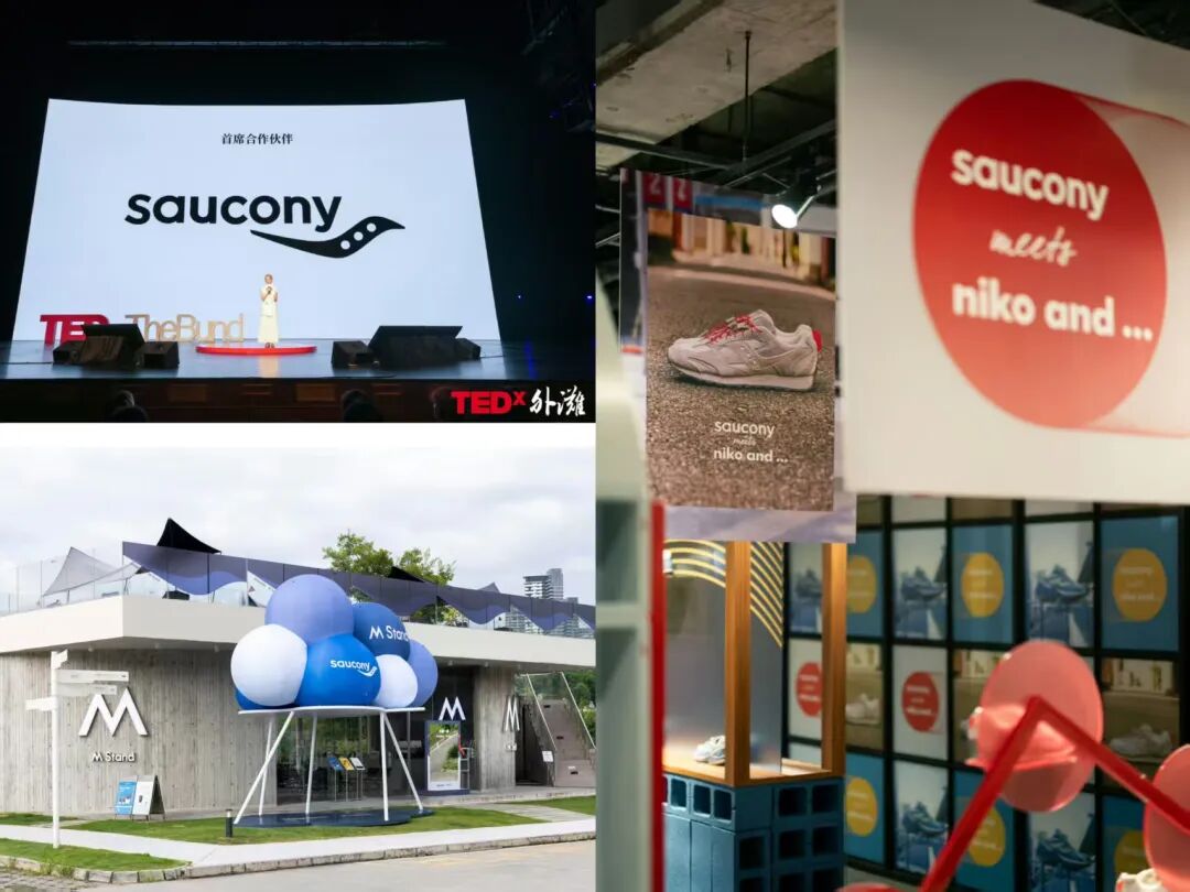 今年7月,索康尼至少做了三轮生活方式营销。和M Stand合作,借咖啡品类的生活方式特性,让索康尼更贴近品质人群的生活;与TEDx外滩合作举办年度大会,邀请倪萍、曹骏等嘉宾输出价值观,引发精英情绪共鸣;与日本潮流生活方式品牌niko and…合作,推出联名跑鞋,向潮流文化靠拢……