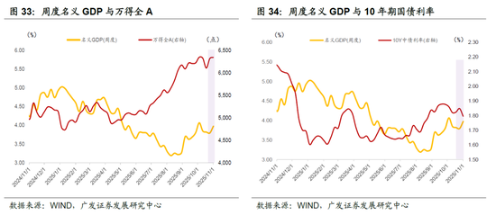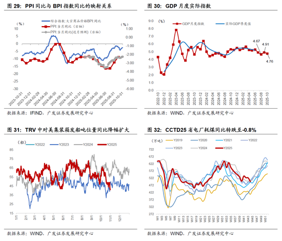 第四,高频模型显示短期经济延续“量降价升”。消费在“补贴退+基数升”共振下继续承压,生产在月内关税不确定性的背景下边际收缩。价格信号分化,基数带来一定优势。预计10月实际、名义GDP预计为4.76%、3.88%,较9月一降一升。