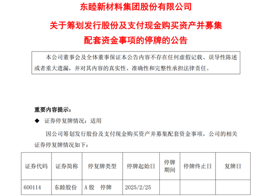 因本次交易尚处于筹划阶段,有关事项尚存不确定性,为保证公平信息披露,维护投资者利益,避免造成公司股价异常波动,经公司申请,东睦股份股票自2025年2月25日(星期二)开市起开始停牌,预计停牌时间不超过10个交易日。