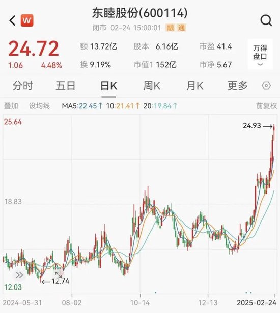 截至2月24日收盘,东睦股份报24.72元/股,总市值为152亿元。