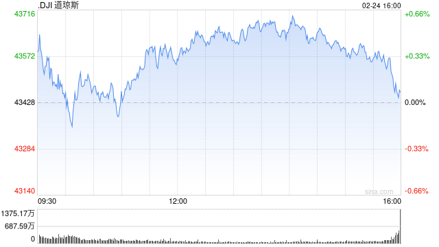 道指涨149.61点,涨幅为0.34%,报43577.63点;纳指跌124.81点,跌幅为0.64%,报19399.20点;标普500指数跌5.16点,跌幅为0.09%,报6007.97点。