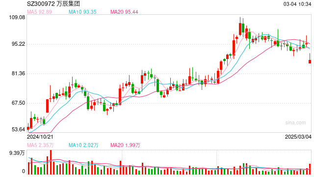 截至3月3日收盘,万辰集团涨2.66%,报95.85元/股。