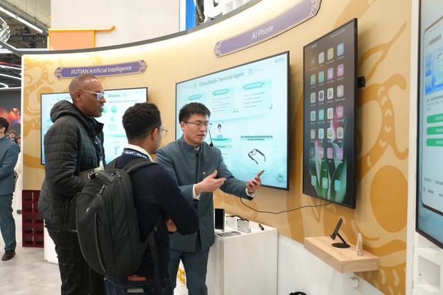 本届MWC,在Fira Gran Via展馆3号馆,中国移动以“数智共生 智联未来”为主题参展,展厅设计以丝绸之路的轨迹为灵感,营造科技与传统融合之感,设置多个展台篇章,聚焦人工智能、5G-A、6G、天地一体、物联网、算力网络等前沿科技领域,向来自世界各地的观众展现中式之“形”和创新之“魂”结合之美。
