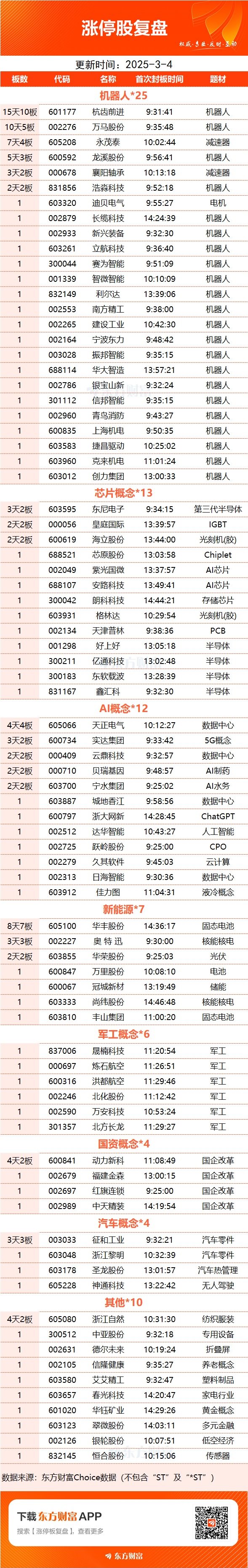 个股方面,机器人概念股强势,杭齿前进等多股涨停。芯片股集体大涨,芯原股份等多股涨停。军工股震荡走强,洪都航空等涨停。下跌方面,固态电池概念股展开调整,三祥新材跌停。