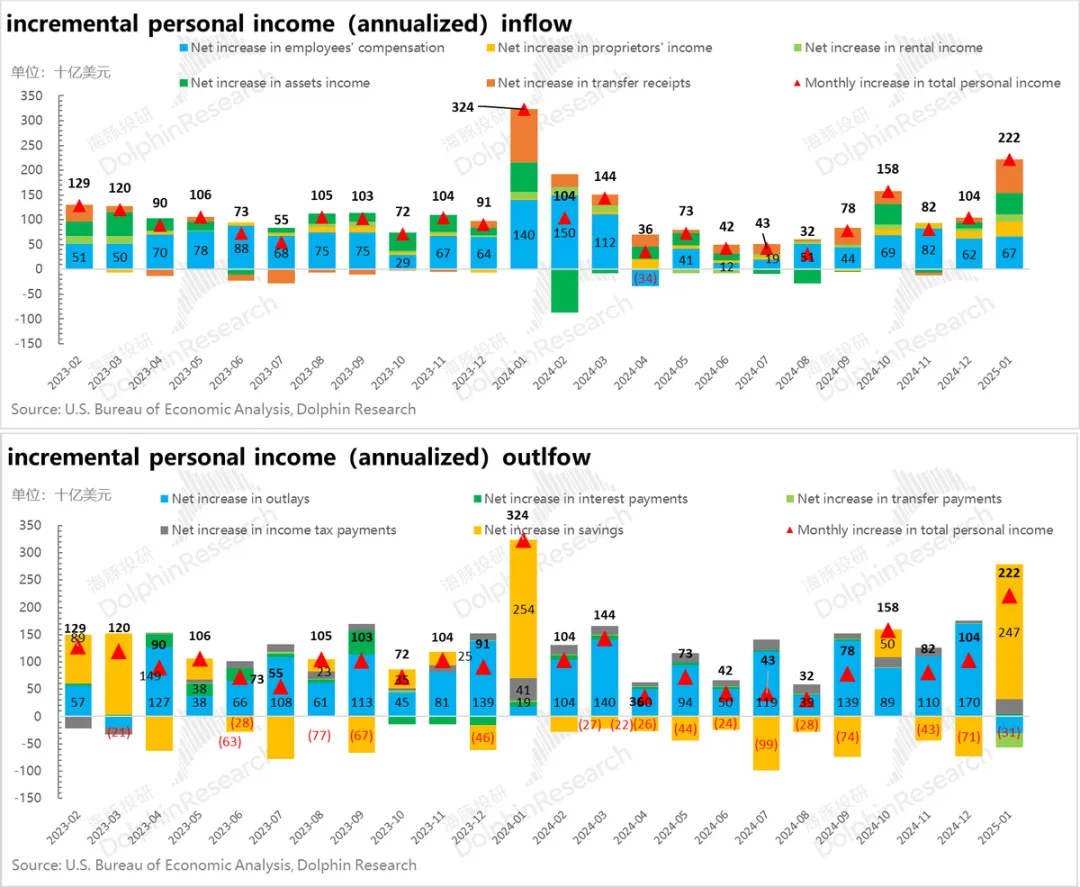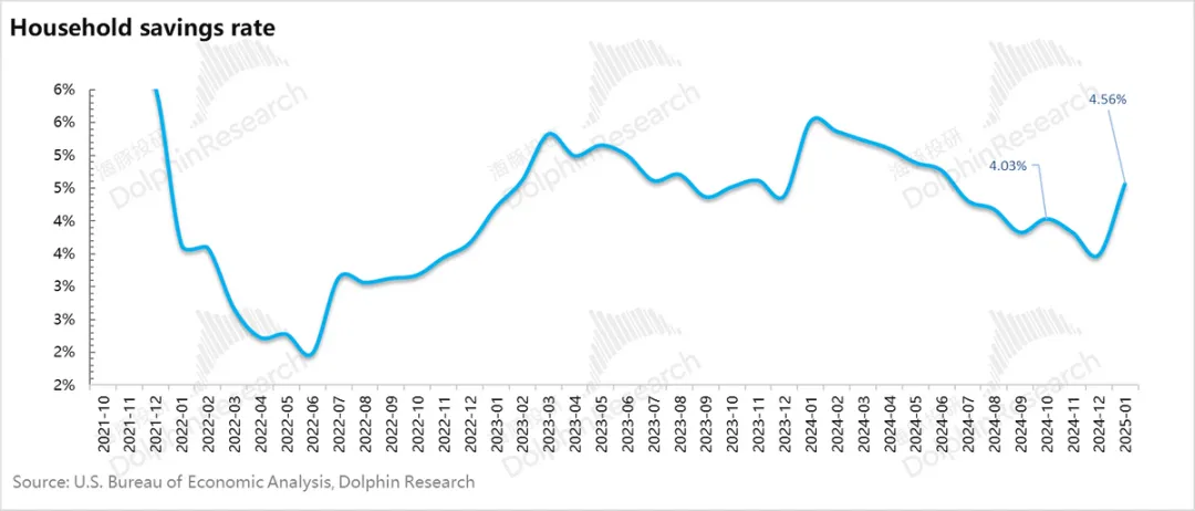 但同时要注意的是,DOGE驱动下的政府部门降本增效+裁员,再加上2月居民信心指数有所下降,确实要关注居民消费对储蓄率的挤压还剩多少空间。