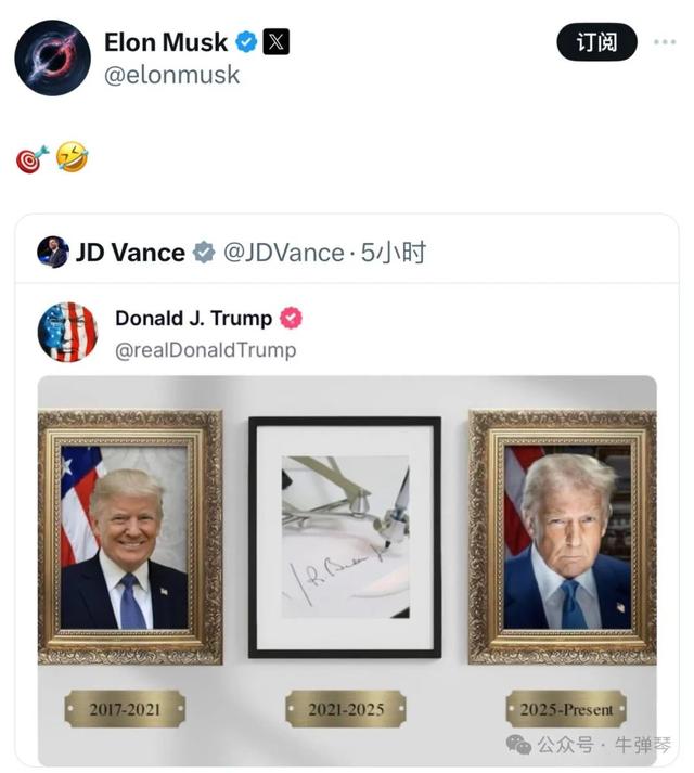 更有意思的,特朗普发出这张照片后,副总统万斯立刻转发。