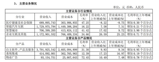 其中,智能汽车互联业务为公司主要收入来源,但该业务毛利率仅为16.22%,相比医疗健康及社会保障业务、智慧城市、企业互联及其他业务分别为47.25%、41.22%、34.66%的毛利率水平存在较大差距。