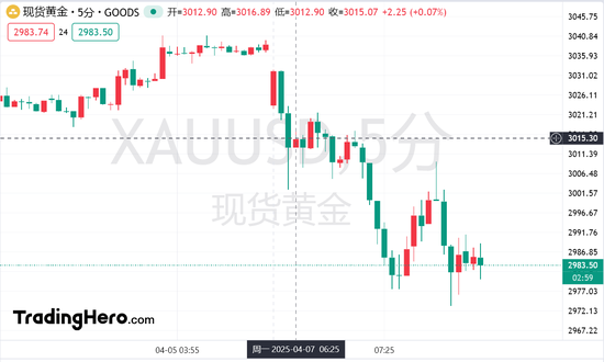现货黄金跌破3000美元关口,日内下跌近2%。