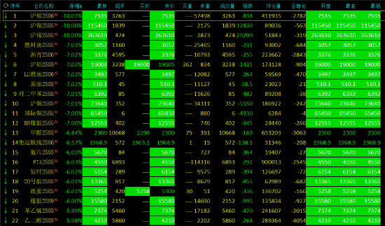 正文 期市开盘:沪银、SC原油、沪铜等触及跌停 21资料 V管理员 /2025-04-07 09:55:06 /0 评论 /30 阅读 0407 早盘开盘,国内期货主力合约大多数下跌,沪银、沪镍、沪锡、燃油、沥青、沪铝、低硫燃料油(LU)、SC原油、PX、沪铜、国际铜触及跌停。