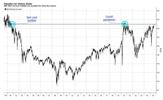 时间来到2025年9月,AI泡沫在全速膨胀,并独自将股市推至互联网泡沫以来的最高估值水平……