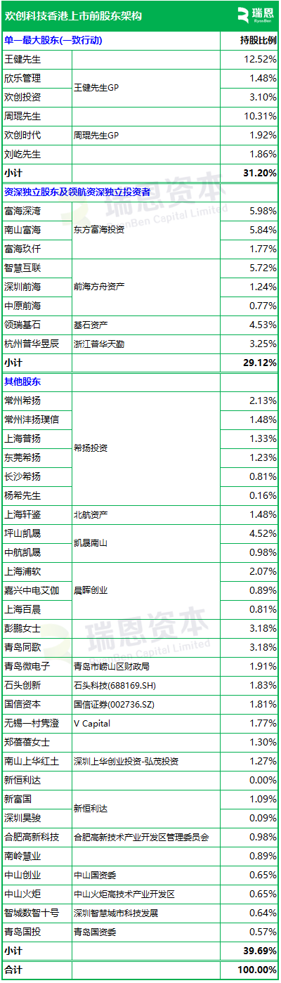 招股书显示,欢创科技在香港上市前的股东架构中,