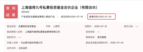 据悉,值得九号为一家于2025年4月27日成立的私募股权投资基金,主要从事私募股权投资,其执行事务合伙人为上海盈科值得私募基金管理有限公司,而其基金产品于7月16日成立,7月24日刚完成备案。