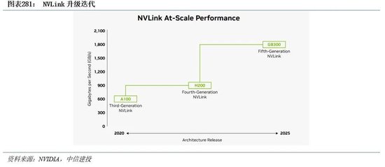 NVLink继续与NVIDIA GPU架构同步发展,每一种新架构都伴随着新一代NVLink。第五代NVLink为每个GPU提供1.8 TB/s的双向带宽,是上一代的2倍,约为第一代NVLink的11倍。