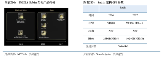 NVIDIA最新AI芯片Rubin各项指标全面升级,将于2026年上市。NVIDIA下一代平台Rubin于2024年6月Computex大会上亮相,该平台具有新的GPU架构、新的ARM架构CPU Vera、新的HBM4存储颗粒、覆盖12颗HBM4的更大尺寸CoWoS封装,以及NVLink6、CX9 SuperNIC网卡和新一代融合IB网络与以太网的新型交换机X1600。