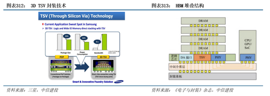 HBM为AI芯片输送“数据弹药”。AI计算是典型的数据密集型任务,海量数据需要在计算核心和内存之间频繁交换。如果内存带宽不足,即使AI芯片的计算能力再强,也会因为数据供应不上而达不到较高的利用率。HBM正是为解决这一瓶颈而设计。HBM通过3D堆叠技术,将多个DRAM芯片垂直整合,并与AI芯片一同封装在基板上,实现了极高的数据传输带宽和更低的功耗。从HBM2E到HBM3,再到最新的HBM3E,其带宽和容量不断翻倍。