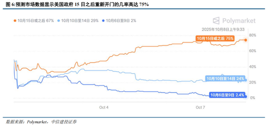 与以往不同,此次关门持续时间可能更长。根据预测市场的数据,此次关门持续到10月15日的概率高达75%,与1995年和2013年的情况类似。如果关门持续到10月15日之后,约130万军警人员将面临薪资停发,届时两党达成妥协的压力将剧增。政府关门的一大后果是,几乎所有联邦经济数据都将推迟发布,直到政府重新开放。这包括市场最为关注的就业报告和消费者价格指数(CPI)。经济数据的缺失可能导致市场定价失灵,加剧市场波动。