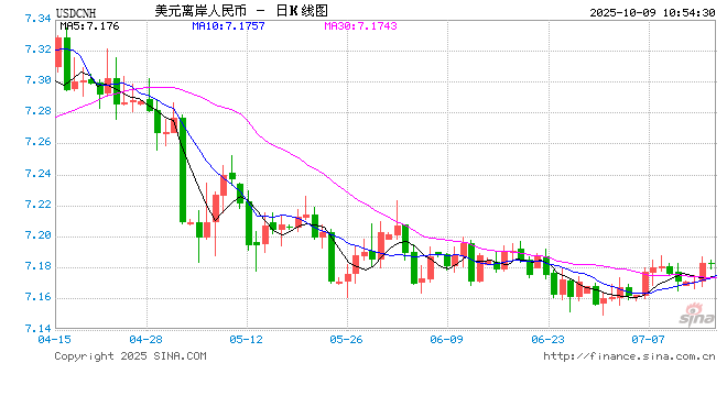 10月9日,人民币兑美元中间价报7.1102,下调47.00点。