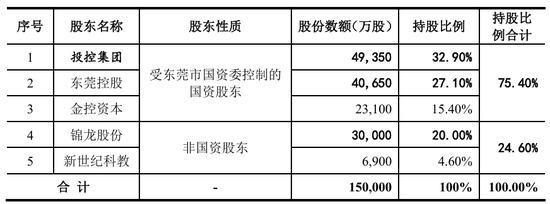 最新招股书显示,东莞市国资委通过投控集团、东莞控股、金控资本间接控制公司75.4%的股份,能够对股东大会决议产生决定性影响。