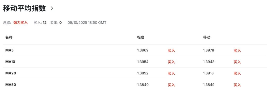 技术指标显示,4小时级别布林带上轨切入点指向1.4005区域水平为汇价提供短线动态阻力,布林带中轨运行线指向的1.3955区域水平为走势界定潜在强弱分化,布林带下轨切入点指向的1.3910区域水平为汇价提供短线动态支撑。当前汇价突破至布林带上轨上方运行,体现多头动能的强劲格局,短线上行趋势确立。布林带开口呈现扩张状态,表明短线波动率有所上升并与价格向上突破形成共振。与此同时,4小时级别14日RSI相对强弱指标升至70.50附近深度超买区域,进一步验证多头动能的强劲格局,但需警惕潜在的技术性回调需求。