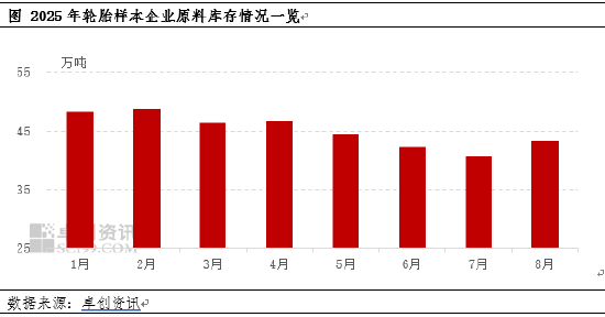 据卓创资讯了解,上半年下游轮胎样本企业原料库存整体处于下降阶段,一方面在于4月份受中美对等关税冲击,市场对于全球需求总体量收缩预期升温;叠加物流运输业不景气,导致轮胎替换市场需求下降,同时轮胎企业新订单预期走弱,使企业对未来消费能力产生担忧且对于未来原料价格预期持看跌预期,因此在买涨不买跌背景下放慢生产节奏,消耗现有库存,从而使得整个原料库存储备整体呈现震荡走弱趋势。然而随着企业原料库存的持续下滑,整体库存储备处于低位。但同时终端市场来看,下半年我国重卡保持稳健增长,物流景气度回升等,传导至轮胎企业订单保持较强韧性;同时由于原料供应上量不足,胶价向下运行空间有限,因此轮胎企业逢低补货积极性升温,原料库存8月呈现较明显增长,且9月份因国庆节前备货支撑,预计仍将维持上涨趋势。而这也将导致在国庆节后短期来看,原料库存储备充分,以及四季度下游订单积极性淡季影响下,整体原料采购需求提升空间或有限。