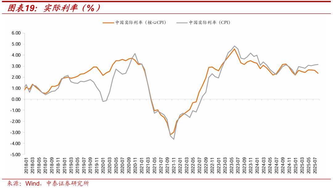 即便基本面走势偏弱,从实际利率的角度看,降息必要性或许并不高。核心CPI今年以来表现持续回升,截至8月当月同比增速上升至0.9%,若考虑到核心CPI和当前的国债利率,相比于去年的实际利率水平可能并不高,如果是基于其他角度的降息,未必对债券是利好。