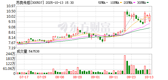 证券时报·数据宝统计显示,苏奥传感今日收盘价为10.15元,上涨0.40%,日换手率为7.07%,成交额为5.47亿元,全天主力资金净流出56.44万元,近5日该股累计上涨4.64%,近5日资金合计净流出4284.41万元。