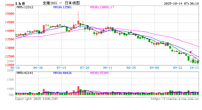 10月13日,生猪期货主力合约2511收盘下跌2.88%,报11125元/吨,续创历史新低,年内累计下跌21%,较去年高点下跌逾40%,空头氛围浓厚。猪肉现货价格自今年三季度以来也是“跌跌不休”,目前已跌破11元/公斤,报10.92元/公斤。
