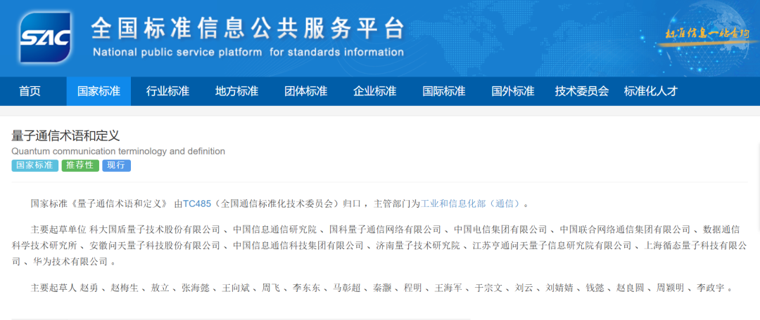 有关部门指导下,国盾量子正联合产学研用各方,起草制定多项量子信息领域标准。