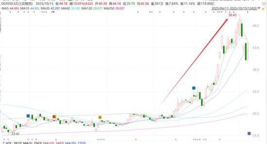 受此影响,三花智控A、H股午后快速拉升。其中三花智控A股以涨停报收,报44.18元/股,总市值为1821亿元。
